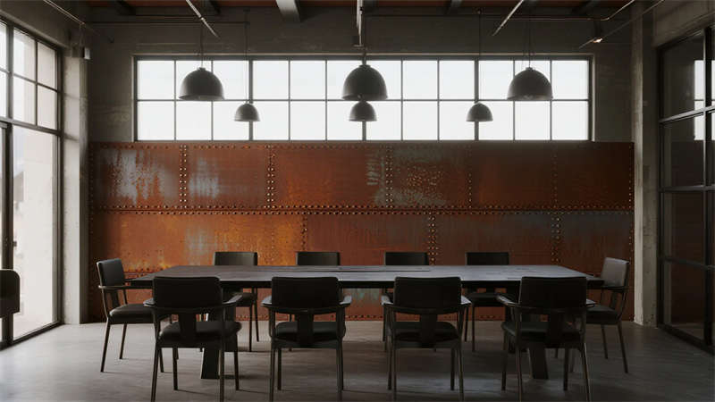 這組工業風辦公室設計以裸露結構和復古質感為核心,通過混凝土、金屬和木質材料的碰撞,打造出兼具實用性與藝術感的辦公空間。空間保留了建筑的原始肌理,如天花板的管線和墻面的磚紋,搭配黑色鐵藝家具和深色調軟裝,營造出冷峻而富有張力的氛圍。局部通過皮質沙發、綠植和暖光燈具軟化工業風的硬朗感,增添人文氣息。