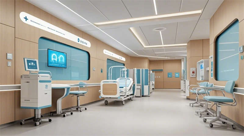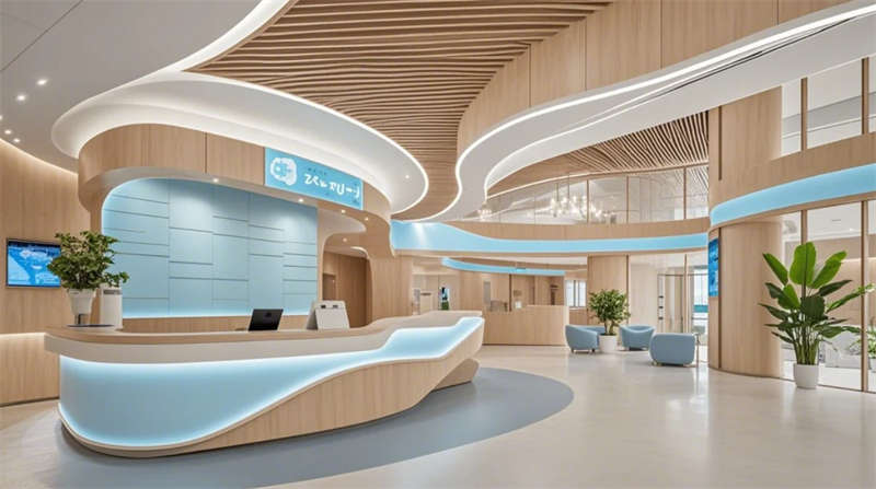 門(mén)診大廳以8米挑高空間構(gòu)建醫(yī)療門(mén)戶形象,曲面導(dǎo)診臺(tái)與智能分診系統(tǒng)形成高效服務(wù)樞紐,木紋格柵吊頂與綠植景觀墻弱化傳統(tǒng)醫(yī)院的冰冷感。兒科診區(qū)創(chuàng)新運(yùn)用馬卡龍色系與云朵軟包墻面,互動(dòng)投影游戲區(qū)搭配動(dòng)物主題診療設(shè)備,構(gòu)建兒童友好型醫(yī)療環(huán)境。VIP病房采用全景落地窗與智能護(hù)理系統(tǒng),可變形家具滿足陪護(hù)與康復(fù)雙重需求,展現(xiàn)高端醫(yī)療的溫度感。